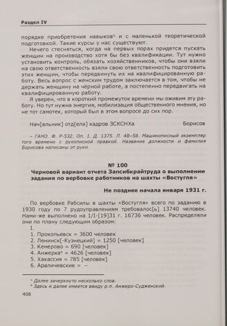 Черновой вариант отчета Запсибкрайтруда о выполнении задания по вербовке работников на шахты «Востугля». Не позднее начала января 1931 г.