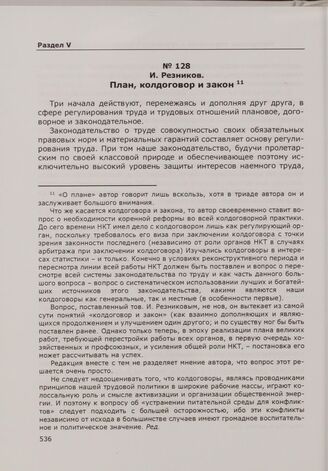 И. Резников. План, колдоговор и закон // Вопросы труда. 1930. № 3. С. 13-19.