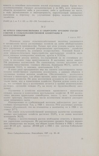 Из отчета Сибкрайисполкома II Сибирскому краевому съезду Советов о сельскохозяйственной кооперации и коллективизации. 1 апреля 1927 г. // Отчет Сибкрайисполкома. Новосибирск, 1927, стр. 39—40.