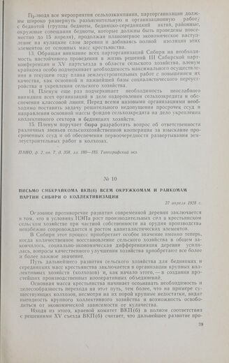 Письмо Сибкрайкома ВКП(б) всем окружкомам и райкомам партии Сибири ...