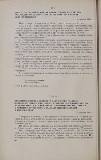 Обращение рабочих колесного цеха омских главных железнодорожных мастерских к крестьянам Называевского, Калачинского и Исиль-Кульского районов Омского округа с призывом организовать красный эшелон с хлебом в подарок ВЦИК. 27 октября 1929 г. // Газета «Рабочий путь», № 247 от 27 октября 1929 г.