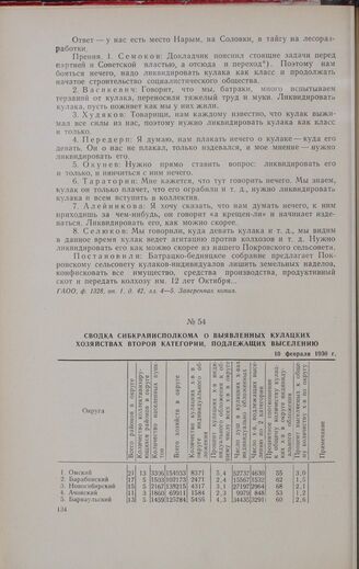 Сводка Сибкрайисполкома о выявленных кулацких хозяйствах второй категории, подлежащих выселению. 10 февраля 1930 г. // ГАНО, ф. 47, oп. 1, д. 502, л. 214. Копия.