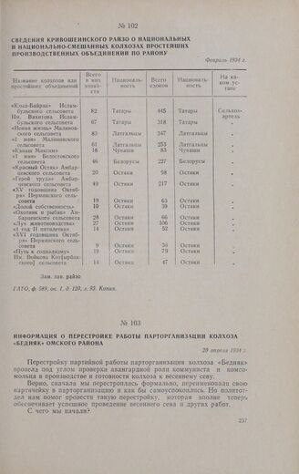 Информация о перестройке работы парторганизации колхоза «Бедняк» Омского района. 20 апреля 1934 г.