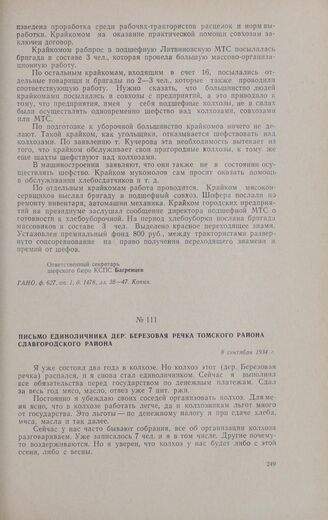 Письмо единоличника дер. Березовая Речка Томского района о необходимости организации колхоза. 8 сентября 1934 г.