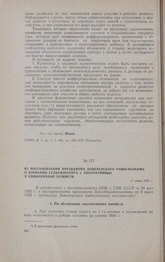 Из постановления президиума Доволенского райисполкома о взимании сельхозналога с коллективных и единоличных хозяйств. 17 июня 1935 г. // ГАНО, ф. 47, oп. 1, д. 2193, лл. 95—96. Заверенная копия.