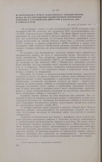 Из материалов к отчету сельхозотдела Запсибкрайкома ВКП(б) об организационно-хозяйственном укреплении колхозов и стахановском движении в колхозах, МТС и совхозах края. Не ранее 10 декабря 1936 г.