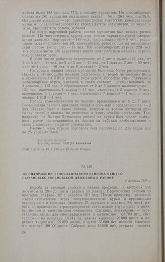 Из информации Белоглазовского райкома ВКП(б) о стахановско-ефремовском движении в районе. 4 февраля 1937 г.