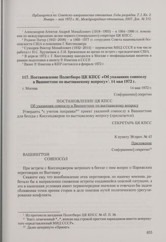Главная Советский Союз и Въетнам в годы второй Индокитайской войны Постановление Политбюро ЦК КПСС «Об указаниях совпослу в Вашингтоне...