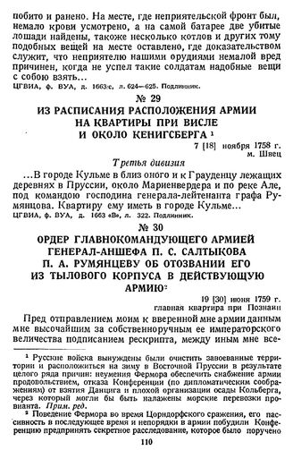 Из расписания расположения армии на квартиры при Висле и около Кенигсберга. 7 [18] ноября 1758 г., м. Швец // ЦГВИА, ф. ВУА, д. 1663 «В», л. 322. Подлинник.