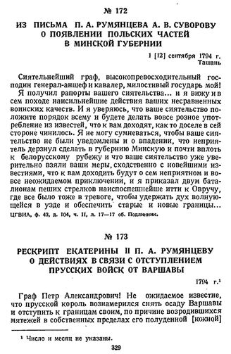 Из письма П. А. Румянцева А. В. Суворову о появлении польских часте...