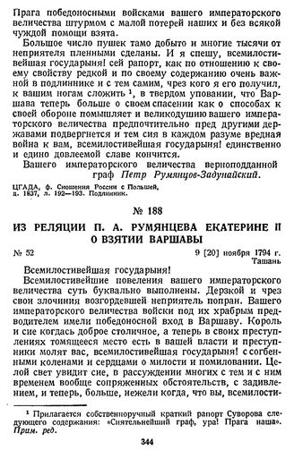 Из реляции П. А. Румянцева Екатерине II о взятии Варшавы. 9 [20] ноября 1794 г., Ташань
