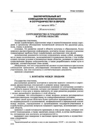 Заключительный акт Совещания по безопасности и сотрудничеству в Европе от 1 августа 1975 г. (Извлечение)