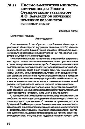 Письмо заместителя Министра внутренних дел России Оренбургскому губернатору Я.Ф. Барабашу об обучении немецких колонистов русскому языку. 20 ноября 1902 г.