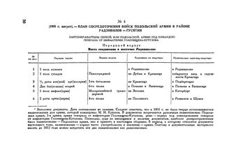 1805 г. август. — План сосредоточения войск Подольской армии в районе Радзивилов-Гусятин
