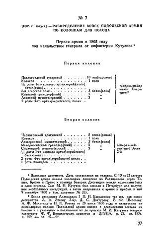 Главная Русские полководцы Русские полководцы. М.И. Кутузов М.И. Кутузов Т2 Документы 1805 г. август. — Распределение войск Подольской армии по колоннам ...