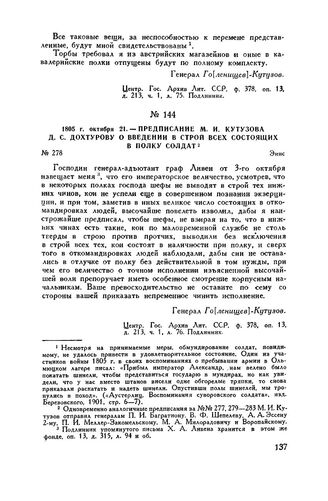 1805 г. октября 21. — Предписание М.И. Кутузова Д.С. Дохтурову о введении в строй всех состоящих в полку солдат. Эннс