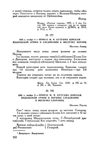 1805 г. ноября 4. — Приказ М.И. Кутузова войскам Подольской армии о следовании к местечку Порлиц. Местечко Лехвиц // Центр. Гос. Архив Лит. ССР, ф. 378, оп. 13, д. 285, л. 58а. Черновик.