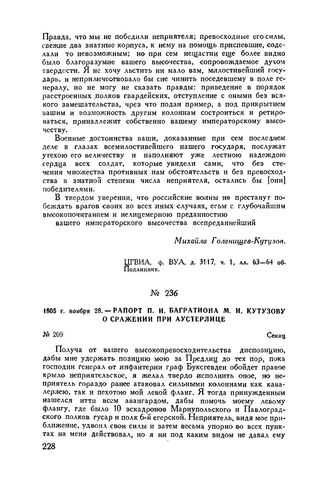 1805 г. ноября 28. — Рапорт П.И. Багратиона М.И. Кутузову о сражении при Аустерлице. Сениц