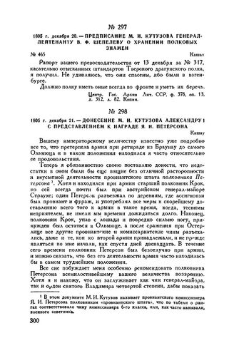 1805 г. декабря 21. — Донесение М.И. Кутузова Александру I с предст...
