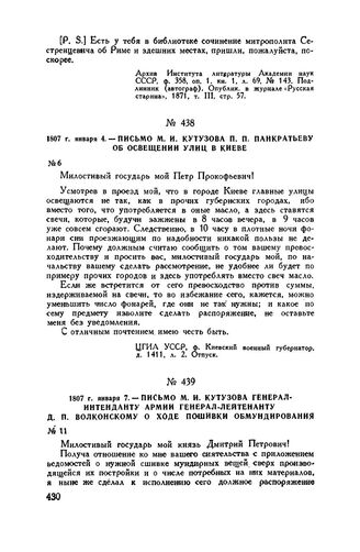 М.И. Кутузов. Т. II: Сб. док. — М.: Воен. изд-во Воен. м-ва СССР, 1951.