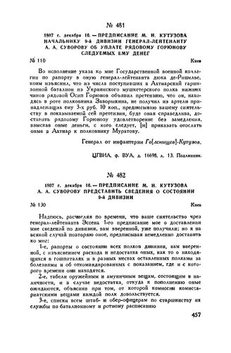 Главная Русские полководцы Русские полководцы. М.И. Кутузов М.И. Кутузов Т2 Документы 1807 г. декабря 16. — Предписание М.И. Кутузова начальнику 9-й диви...