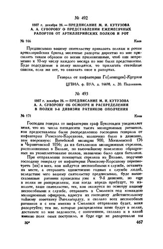 1807 г. декабря 26. — Предписание М.И. Кутузова А.А. Суворову о представлении ежемесячных рапортов от артиллерийских полков и рот. Киев