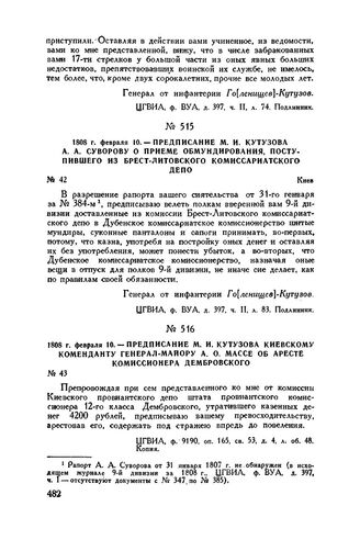 1808 г. февраля 10. — Предписание М.И. Кутузова киевскому комендант...