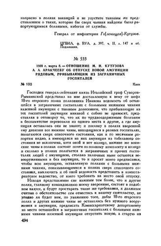 Главная Русские полководцы Русские полководцы. М.И. Кутузов М.И. Кутузов Т2 Документы 1808 г. марта 8. — Отношение М.И. Кутузова А.А. Аракчееву об отпуск...