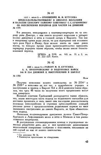 1808 г. июля 9. — Рапорт М.И. Кутузова А.А. Прозоровскому о подготовке войск 8-й и 22-й дивизий к выступлению в Бырлат. Яссы