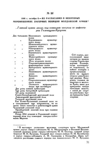 1808 г. октября 6. — Из расписания о некоторых перемещениях лагерных позиций Молдавской армии // ЦГВИА, ф. 9190, оп. 163а, св. 91, д. 5, лл. об. 24-23. Подлинник.