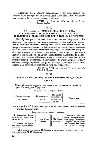 1808 г. — Из расписания зимних квартир Молдавской армии