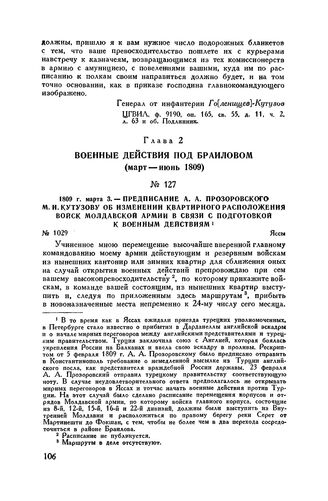 1809 г. марта 3. — Предписание А.А. Прозоровского М.И. Кутузову об изменении квартирного расположения войск Молдавской армии в связи с подготовкой к военным действиям. Яссы