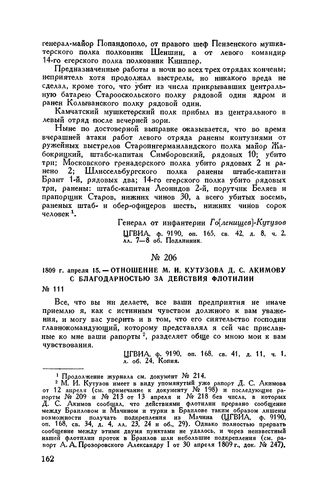 1809 г. апреля 15. — Отношение М.И. Кутузова Д.С. Акимову с благодарностью за действия флотилии // ЦГВИА, ф. 9190, оп. 168, св. 41, д. 11, ч. 1, л. об. 24. Копия.