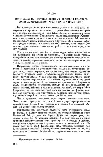 1809 г. апреля 16. — Журнал военных действий главного корпуса Молдавской армии за 15 апреля 1809 г. // ЦГВИА, ф. 9190, оп. 165, св. 42, д. 8, ч. 2, лл. 10-11. Подлинник.