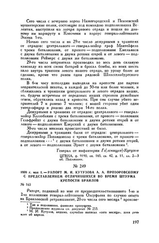 1809 г. мая 1. — Рапорт М.И. Кутузова А.А. Прозоровскому с представ...