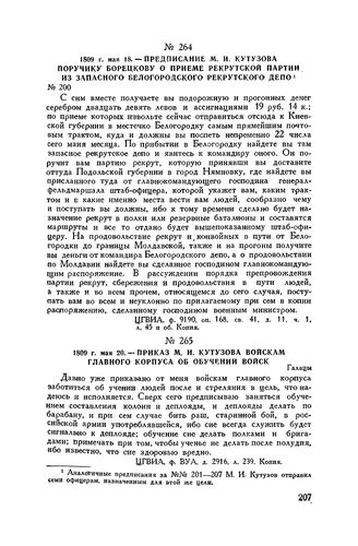 1809 г. мая 20. — Приказ М.И. Кутузова войскам главного корпуса об обучении войск. Галацы