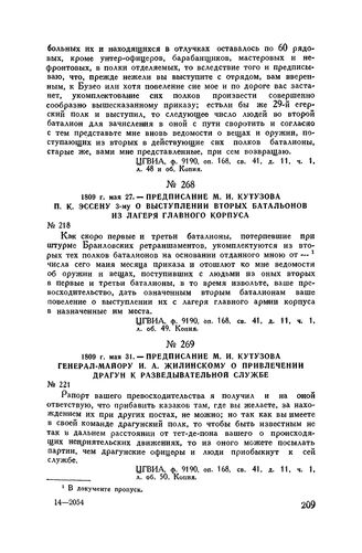 1809 г. мая 31. — Предписание М.И. Кутузова генерал-майору И.А. Жилинскому о привлечении драгун к разведывательной службе // ЦГВИА, ф. 9190, оп. 168, св. 41, д. 11, ч. 1, л. об. 50. Копия.