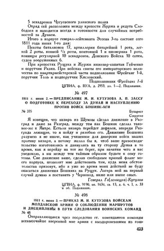 1811 г. июня 3. — Приказ М.И. Кутузова войскам Молдавской армии о с...