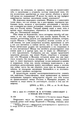 1811 г. июня 23. — Рапорт М.И. Кутузова Александру I о победе при Р...