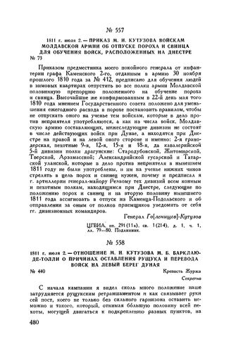 Главная Русские полководцы Русские полководцы. М.И. Кутузов М.И. Кутузов Т3 Документы 1811 г. июля 2. — Отношение М.И. Кутузова М.Б. Барклаю-де-Толли о п...