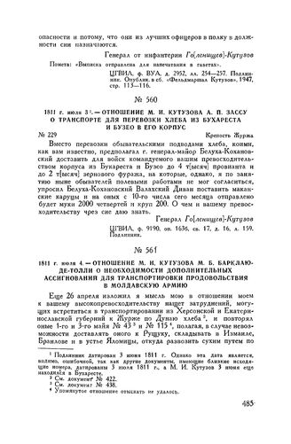 1811 г. июля 3. — Отношение М.И. Кутузова А.П. Зассу о транспорте д...