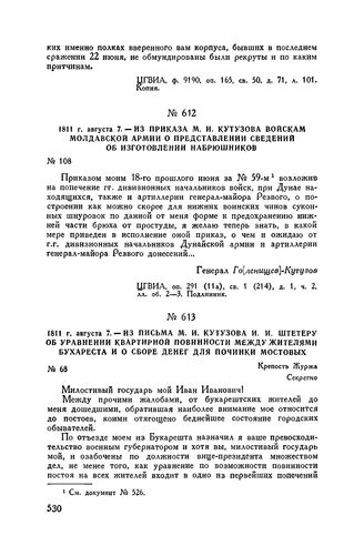 1811 г. августа 7. — Из приказа М.И. Кутузова войскам Молдавской ар...