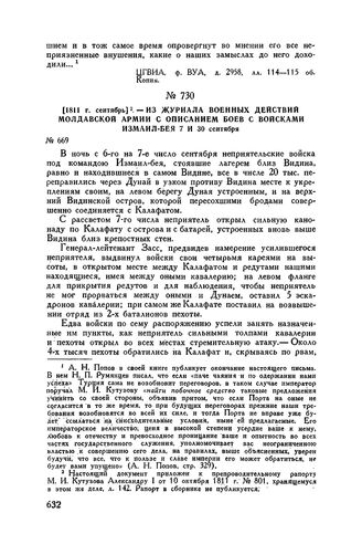 1811 г. сентябрь. — Из журнала военных действий Молдавской армии с ...