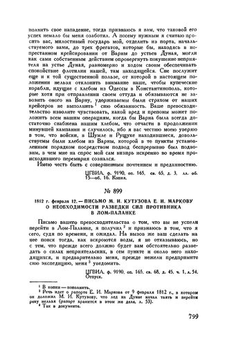 1812 г. февраля 12. — Письмо М.И. Кутузова Е.И. Маркову о необходимости разведки сил противника в Лом-Паланке