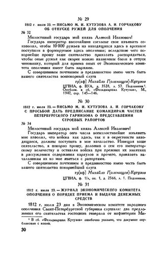 1812 г. июля 23. — Письмо М.И. Кутузова А.И. Горчакову об отпуске ружей для ополчения