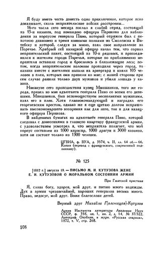 Главная Русские полководцы Русские полководцы. М.И. Кутузов М.И. Кутузов Т4 ч.1 Документы 1812 г. августа 19. — Письмо М.И. Кутузова жене Е.И. Кутузовой о мо...