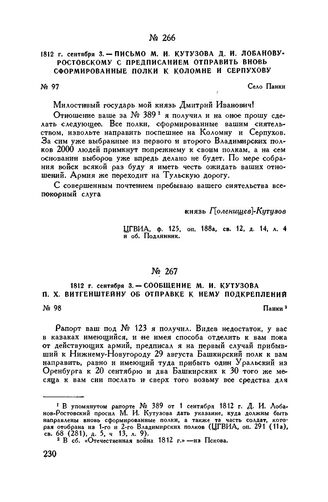 1812 г. сентября 3. — Сообщение М.И. Кутузова П.X. Витгенштейну об отправке к нему подкреплений. Панки