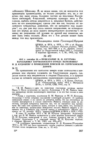 Главная Русские полководцы Русские полководцы. М.И. Кутузов М.И. Кутузов Т4 ч.1 Документы 1812 г. сентября 26. — Приказание М.И. Кутузова начальнику партизан...