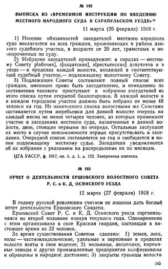 Отчет о деятельности Ершовского волостного Совета Р. С. и К. Д. Осинского уезда. 12 марта (27 февраля) 1918 г. // Газ. «Труженик», № 8 от 12 марта (27 февраля) 1918 г., стр. 4.