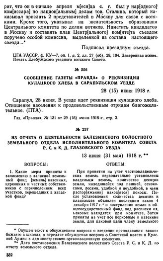 Сообщение газеты «Правда» о реквизиции кулацкого хлеба в Сарапульском уезде. 28 (15) июня 1918 г. // Газ. «Правда», № 131 от 29 (16) июня 1918 г., стр. 3.